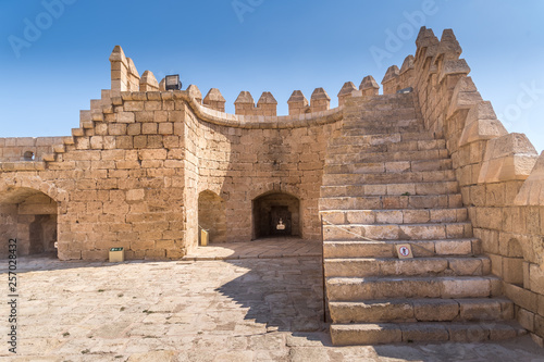 Almeria medieval castle panorama with blue sky from the air in Andalusia Spain former Arab stronghold
