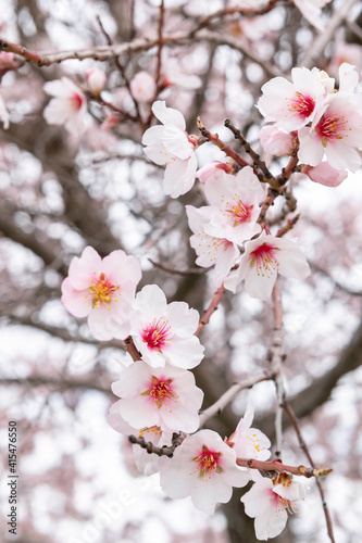 Almond blossom leaves in spring