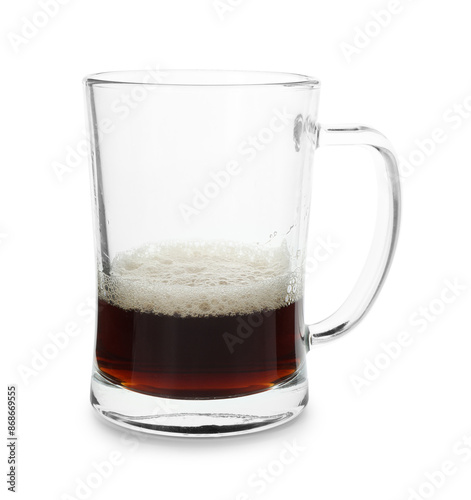 Almost empty mug of beer isolated on white