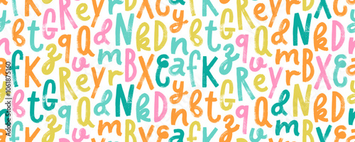 Alphabet wallpaper with funky letters. Brush drawn vector font seamless pattern. Grunge bold alphabet background.