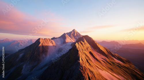 sunrise, mountain, range, alpine, peak, landscape, sky, rock, nature, scenic, shadow, terrain, ridge, elevation, outdoors, adventure, geology, wilderness, geography, majestic, aerial view, cliff, snowcap, vista, environment, remote, morning, highland, slope, rugged