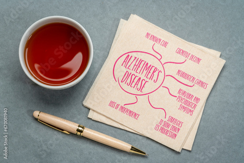 Alzheimer's disease - infographics or mind map sketch on a napkin with tea, aging, lifestyle and medical concept