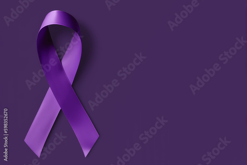 alzheimer's disease day, purple ribbon on purple background, empty space, generative AI