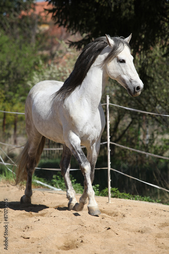 Amazign white andalusian stallion moving