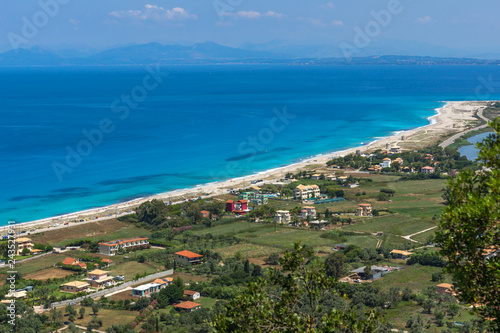 Amazing panorama of Agios Ioanis beach with blue waters, Lefkada, Ionian Islands, Greece