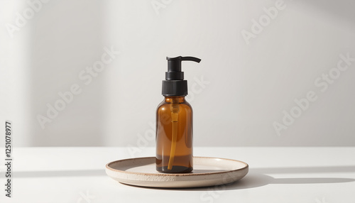 Amber glass bottle on a minimalist plate