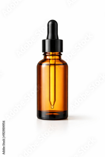 Amber Glass Dropper Bottle Mockup Isolated on White Background