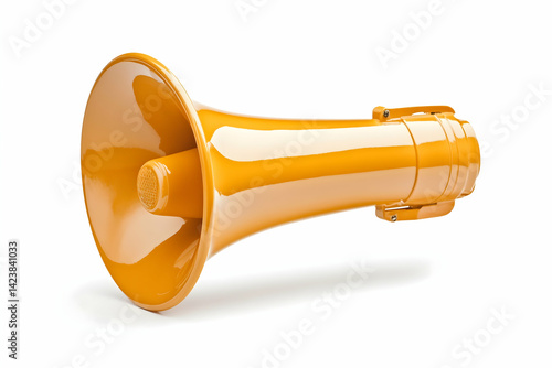 megaphone, bullhorn, loudspeaker, speaker, announcement, communication, sound, audio, voice, message, public, address, broadcast, alert, warning, siren, emergency, protest, rally, demonstration, event, crowd, attention, loud, powerful, strong, clear, distinct, amplification, equipment, device, tool, technology, yellow, orange, colours, isolated, white, background, studio, object, hardware, amplifier, horn, audio system