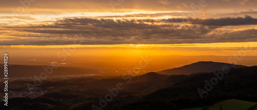 sunset, vosges, amber, black forest, cloud, dusk, forest, horizon, mountain, mountain, sun, sundown, sunlight, vale, vogesen, wood