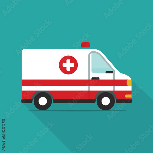 Ambulance Car Vector for Healthcare and Emergency Services - Flat Vector Illustration