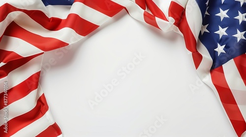 American flag draped in a wave pattern with a white background, symbolizing patriotism, independence, and national pride., 4th of july holiday,Independence Day,Memorial Day