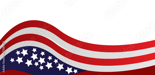 American flag, wavy design, patriotic, stars and stripes, red white and blue, abstract background, curved lines, stylized banner,national symbol, graphic illustration, minimalist composition,
