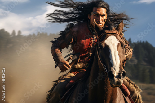 American indian warrior on the prairies of North America.