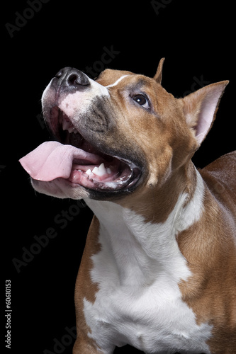 american, animal, background, breed, brown, bull, canino, danger, dangerous, devoted, dog, domestic, front, isolated, looking, muscular, 1, pedigree, pedigreed, pet, pit, portrait, puppy, purebred, shot, staff, staffordshire, strong, studio, terrier, view, weapon, white, young
