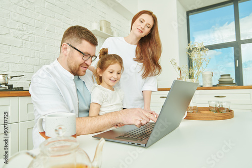 family, happy, laptop, apartment, beautiful, casual attire, caucasian, children, childhood, communicate, computer, cute, father, daughter, dining room, father, female, girl, healthy, home, homemaker, husband, indoor, interior, cyberspace, children, kitchen, lady, life, little, male, man, model, modern, mother, mother, people, portrait, positive, remote, smiling, together, well-being, wife, woman, working, young