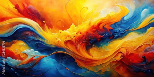 An abstract composition of swirling colors, with vibrant hues of yellow, blue, and red creating a dynamic and energetic atmosphere.