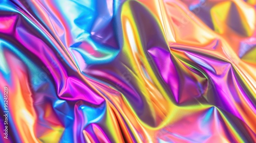 An abstract holographic background with a shimmering foil texture and vibrant rainbow colors, reminiscent of a retro 90s aesthetic.