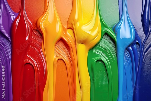 An abstract representation of a rainbow created with vibrant oil paint, featuring dynamic brushwork and a burst of colors. Ideal for artistic projects and inspiration.