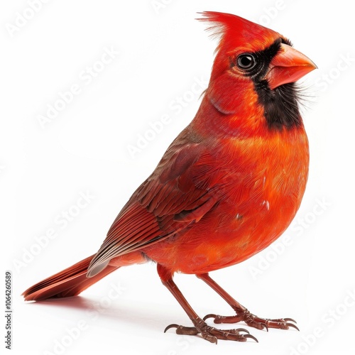An adorable red cardinal hops playfully, its rich colors beautifully contrasting with the gentle light surrounding it.