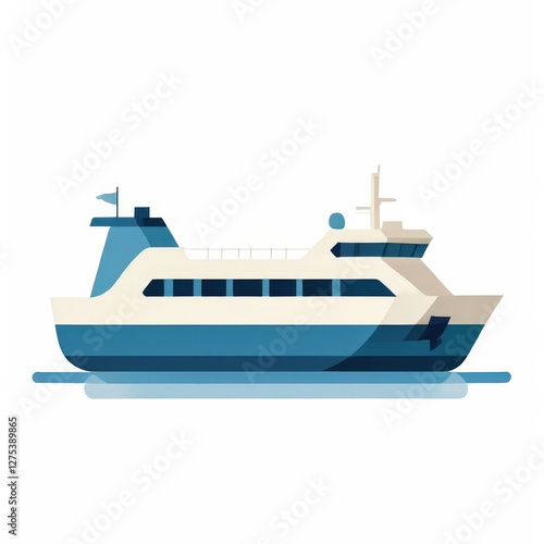 ferry, ship, passenger, transportation, maritime, travel, vector, illustration, colourful, design, sea, watercraft, cruise, vessel, nautical, dock, harbor, voyage, sailing, ocean, river, white background, art, graphic, style, traveling, bold, elegant, transport, serene, refined, clean, creative