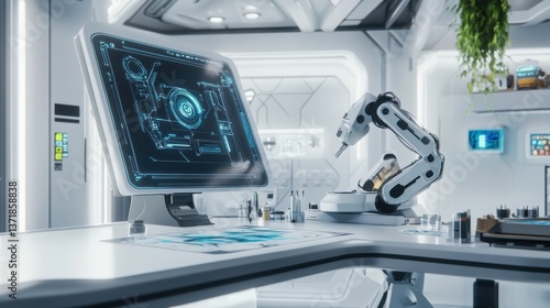 ai, powered, robotic, artist, creating, digital, painting, futuristic, art, studio, sleek, creative, space, automated, drawing, tool, high technology, style, photo, medium, shot, artistry, ample, white, high, quality, image, illustrating, creativity