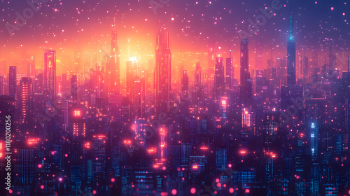 intricate, futurism, fabric, pattern, dynamic, glowing, neon, city landscape, holographic, detail, japanese, kanji, geometric, rich, gradient, futuristic