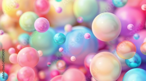 An artwork features vibrant 3D spheres on a blurred pastel gradient, creating a modern dreamy aesthetic