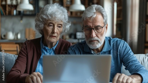 elderly, couple, laptop, computer, online, cyberspace, technology, home, living room, cosy, comfortable, sharing, connection, moment, digital, browsing, searching, screen, reading, learning, working, retirement, aged, grey hair, goggles, love, together, family, friends, communication, lifestyle, modern