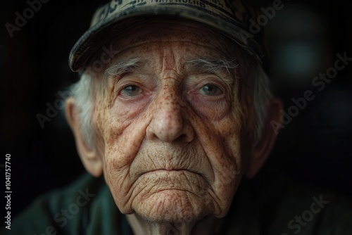 An elderly man gazes thoughtfully into the distance, his face showcasing deep wrinkles and a lifetime of experiences. Wearing a cap, he embodies the resilience of age in a moment of quiet reflection.