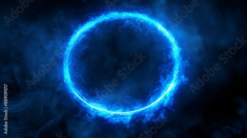 An electric blue circle of fire in space, surrounded by darkness
