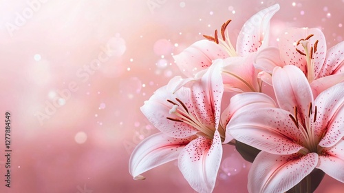 An elegant composition of pink lilies against a soothing pastel background, ideal for greeting cards, romantic decor, or Women’s Day promotions.