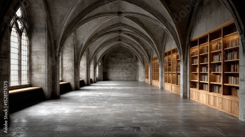 hall, castle, architecture, arch, mediaeval, interior, bookshelf, book, historic, stone, building, corridor, gothic, vault, window, light, empty, nobody, ancient, vintage, old, design, structure, europa, european, religion, abbey, monastery, passage, library, aisle, renaissance, construction, wall, floor, arched, religious, culture, classic, traditional, interior design, indoor, background, illustration