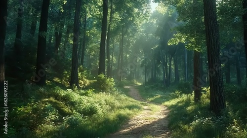 forest, path, sunlight, tree, nature, green, landscape, wood, trail, light, serene, peaceful, foliage, dreamy, aethereal, leaf, grass, summer, spring, outdoors, scenic, beauty, tranquil, environment, timberland, walk, adventure, hiking, journey, exploring, quiet, escape, magical, atmosphere, relaxing, vibrant, plant, earth, fresh, growth, meditation, well-being, calmness, harmony, energy