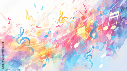 An energetic and colorful abstract illustration featuring musical notes and vibrant splashes of color, celebrating the joy of music and creativity.