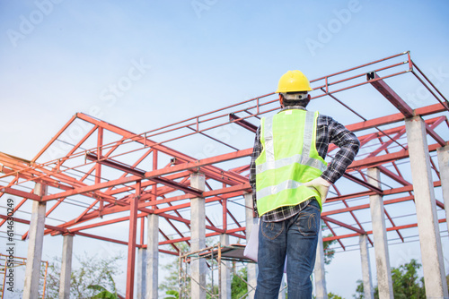 An engineer looks at the unfinished roof design. consider editing