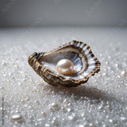 An ethereal oyster shell cradling a luxurious pearl, glowing under gentle natural light, with no distractions on a pure white background.