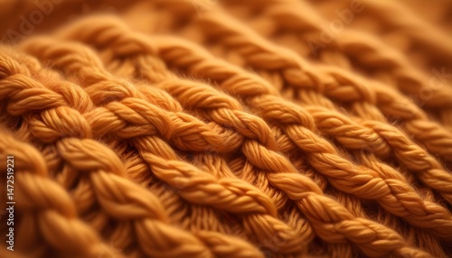 An eye-level view of a detailed orange knit textile, showing its warm texture beautifully.