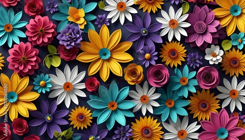 An HD poster featuring a stunning 3D floral background. The design includes a lush arrangement of intricately detailed flowers with vibrant colors and textures.