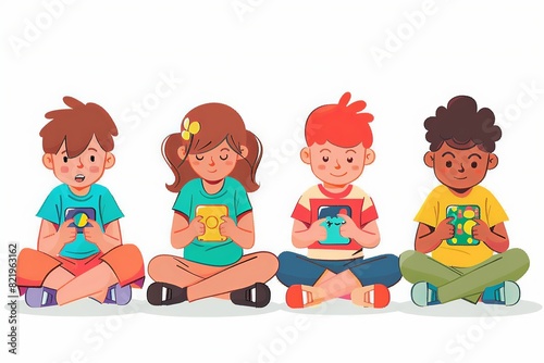 illustration, children, problem, mobile, phone, game, school, computer, mental, disorder, addiction, technology, tablet, electronic, device, gaming, digital, distraction, education, youth, children, student, classroom, behaviour, health, issue, cyberspace, social, media, online, sharpened, concentration, learning, interaction, virtual, reality, play, mental health, attention, development, impact, children
