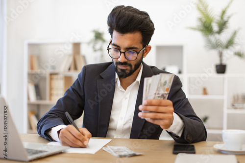 indian, businessman, money, cash, finance, business, male, man, guy, arab, muslim, writing, office, dollar, financial, wealth, success, income, investment, bank, paperwork, work, desk, goggles, bearded, photogenic, adult, caucasian, portrait, modern, lifestyle, professional, employee, entrepreneur, earning, payment, currency, accounting, profit, savings, rich, expensive, luxury, paying, checking, planning, signature, signing, arabian