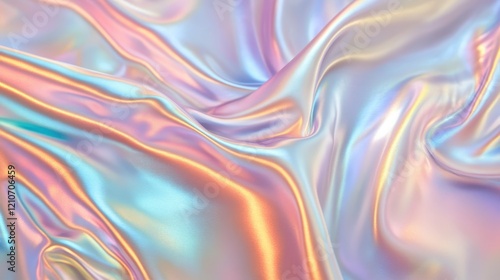 An iridescent texture with a silky fluid appearance showcasing a spectrum of pastel colors that shift and change depending on the angle