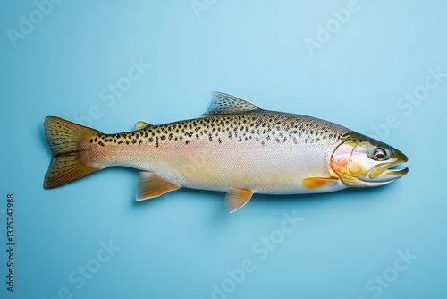 fish, aquatic, food, animal, isolated, fin, tail, scale, texture, detail, fresh, eye, gill, mouth, body, background, blue, colours, nature, wildlife, seafood, swim, underwater, horizontal, top, view, spot, spotted, pattern, life, ocean, river, stream, eat, protein, healthy, cookery, iridescent, colourful, silver, gold, edible, culinary, salmon, marin, closeup, scale