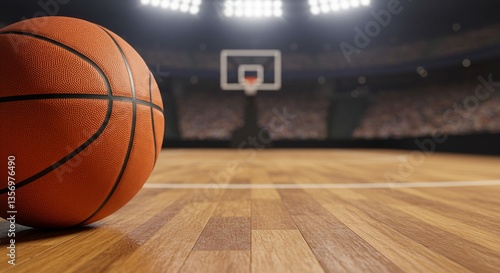 an orange basketball on the gym floor.