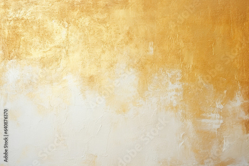 An up-close view of an abstract gold art painting, highlighting oil brushstrokes and palette knife techniques on canvas.