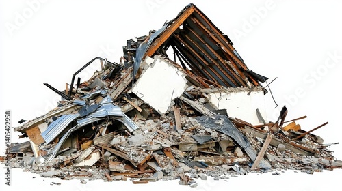 half face, pile, heap, debris, destroyed, collapsed, wrecked, home, house, cement, concrete, brick, staying, construction, building, garbage, waste, white, background, ruin, destruction, remain, structure, sideview, architecture, damage, safety, disaster, urban, empty, site, environment, desolation, broken, material, loss, tragedy, surface, fallen, exterior, space, foundation, landscape, scene, wreckage, remnant