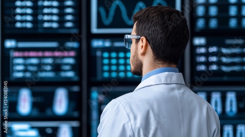 analyst, labcoat, researcher, monitor, medicals, datum, health care, scientist, doctor, technology, health, information, screen, man, professional, review, research, science, looking, serious, occupation, goggles, male