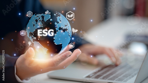Analyze investment ESG by ESG icons.ESG environment concept. close to the computer screen in the business investment strategy concept.