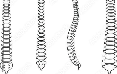 Anatomical illustrations of the human spine from different angles and views