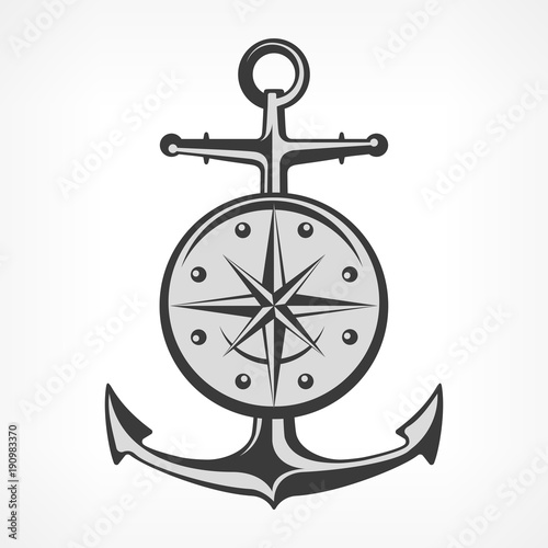 anchor, compass, nautical, sea, marin, vessel, symbol, spyglass, windrose, steel, ship, icon, equipment, old-fashioned, retro, antique, travel, signs, insignia, black, drawing, security, silhouette, metal, water, label, illustration, vector, badge