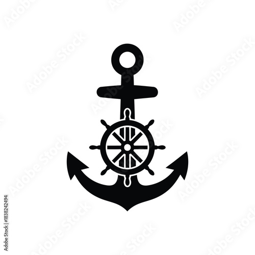 anchor, ship, wheel, silhouette, vector, art, illustration, marin, nautical, helm, boat, logotype, icon, design, outline, shape, graphic, black, monochrome, decor, element, emblem, seal, pattern, symbol, tribal, classic, form, detail, contour, stroke, minimal, style, theme, signs